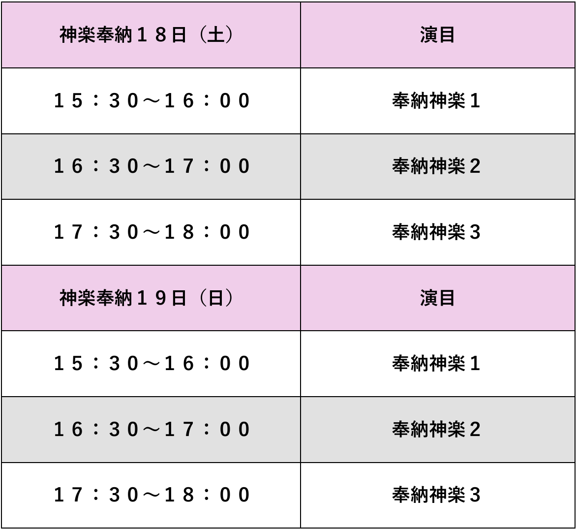 18日・19日奉納神楽スケジュール